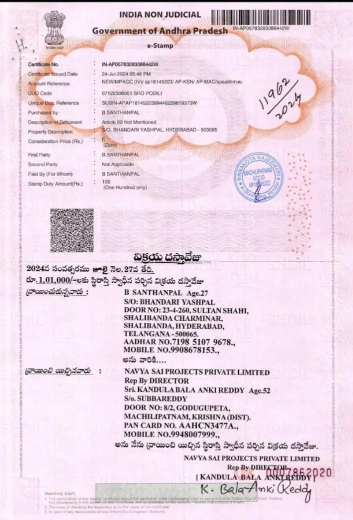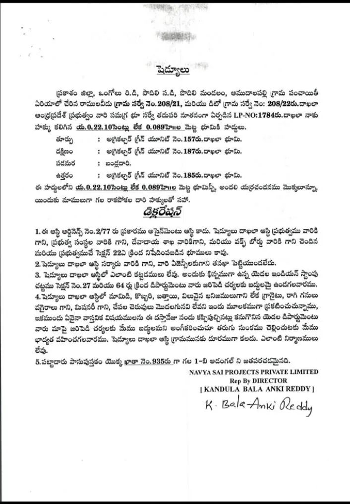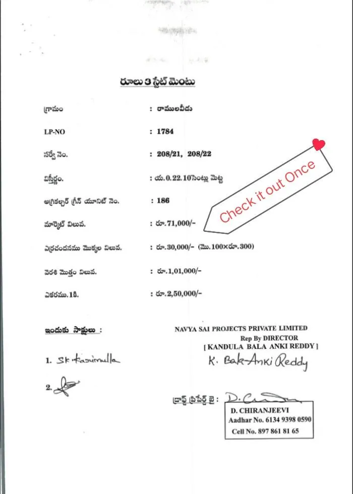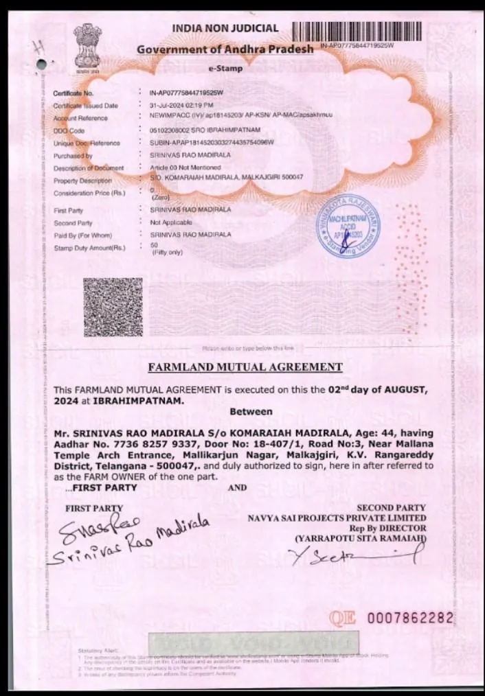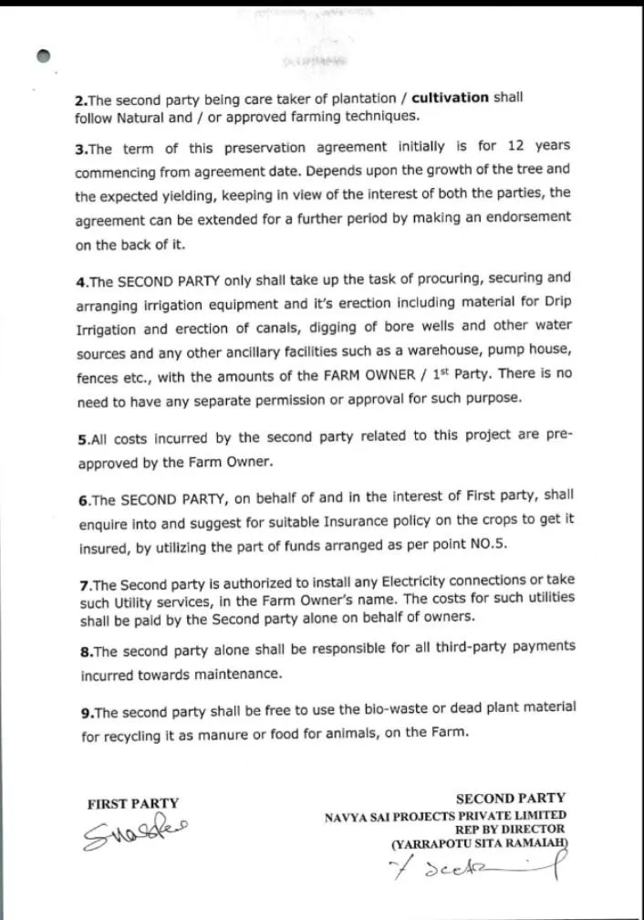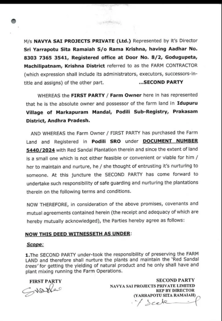 Along with the land, we will also provide a registration document for the red sandalwood plants, with stamp duty paid.
